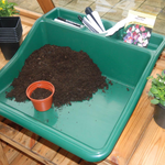 The Garland Compact Tidy Tray in green is a versatile, spacesaving work tray ideal for gardening, crafting, and household use. Made from 100% recycled polypropylene, this one-piece tray features an integrated rear shelf for storing tools or small items, making it perfect for both indoor and outdoor tasks.